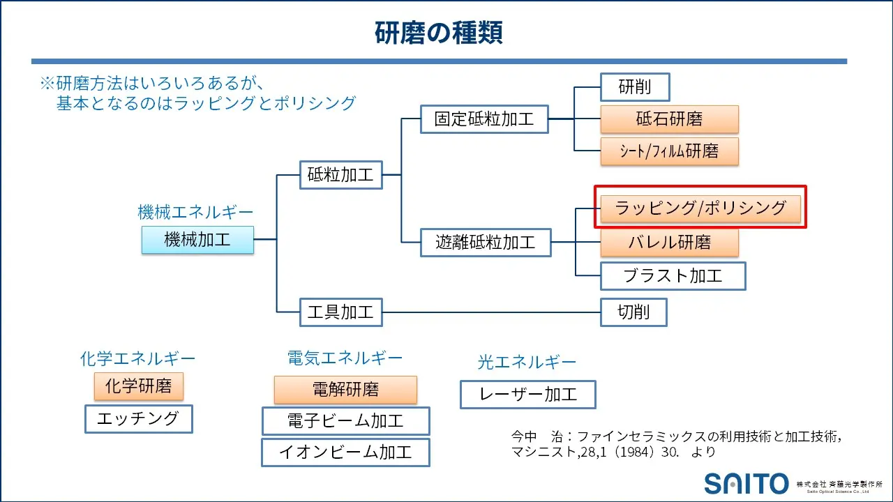種類に関する解説から、代表的なラッピング・ポリシングについて詳しいところまで見ていきましょう。