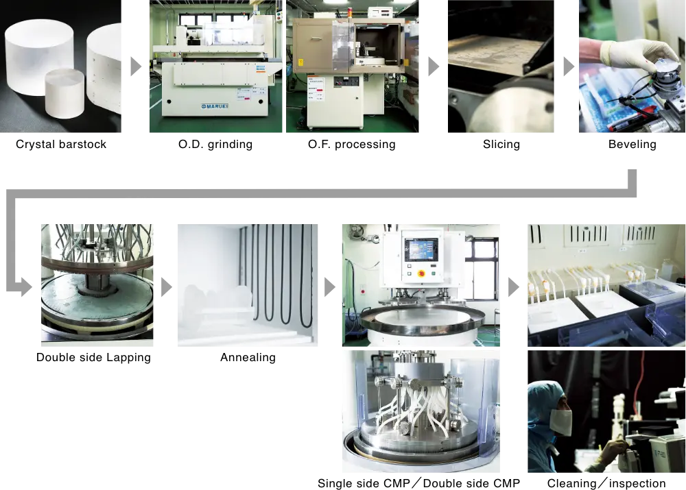 | 素材実績 | Single crystals | Sapphire、SiC、GaN、Diamond、Si、Quartz、AlN、LiTa O3、LiNbO3、MgF2、CaF2、Ga2O3 |